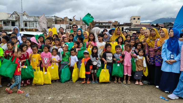 Luwu Timur, Chaneltipikor.com – Tawa dan keceriaan kembali terdengar di posko pengungsian sementara korban kebakaran Dermaga Sorowako, Kecamatan Nuha, Senin (1/9/2025).
