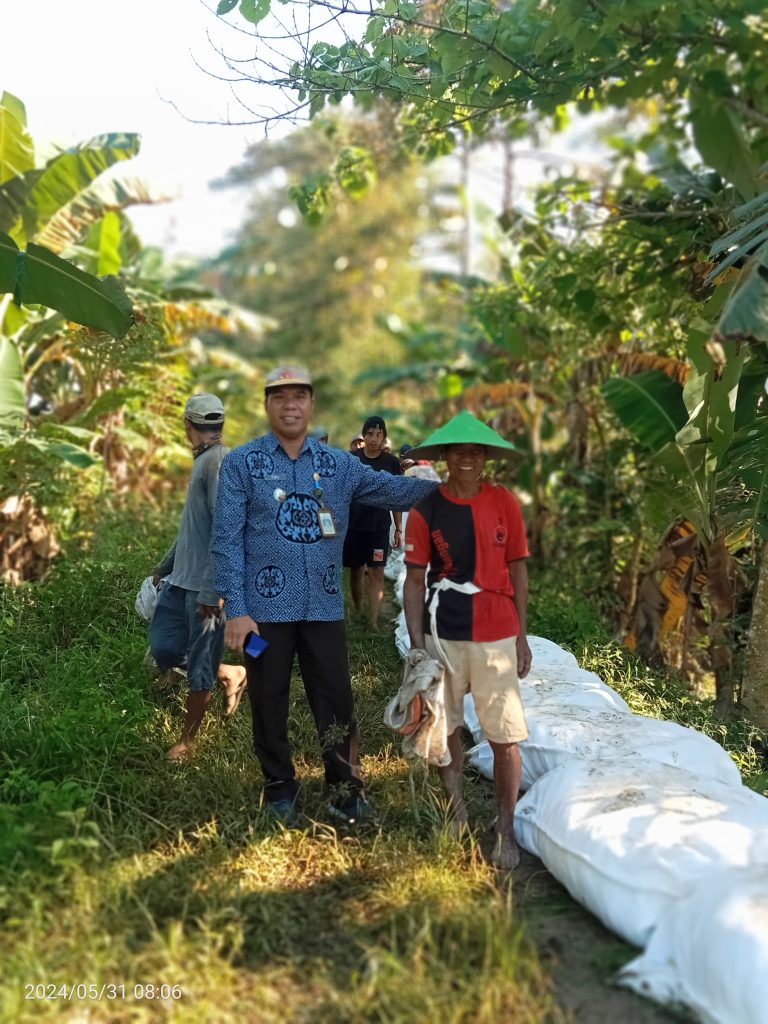 “Ada 200 kantong geobag yang diisi dengan tanah untuk menahan luapan air sungai sehingga tidak masuk ke persawahan warga sebagai akibat dari turunnya tanggul,” ujar Diman, Sekdes Cendana Hitam Timur, di sela-sela kegiatan gotong royong warga.
