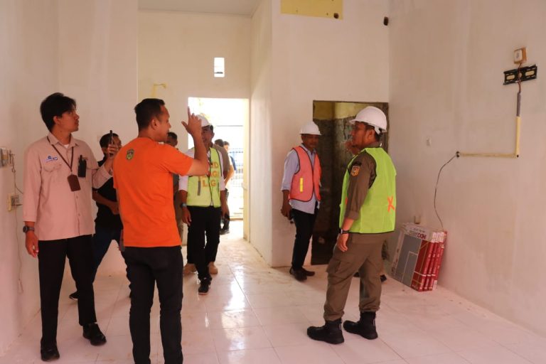 Dengan teliti, Bupati Irwan memperhatikan setiap detail ruangan yang masih dalam tahap pengerjaan.