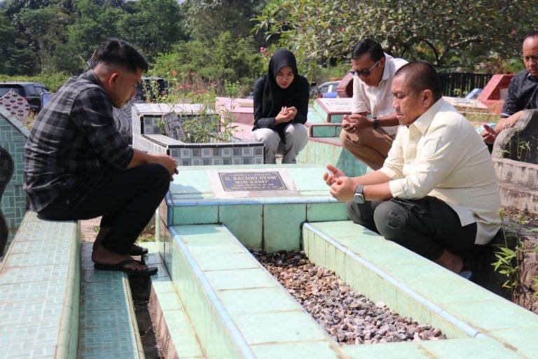 Dengan langkah perlahan, Bupati Irwan mendekati makam orang-orang yang paling dicintainya. Ia tampak khusyuk membersihkan makam, merapikan rumput, lalu menundukkan kepala dalam doa. Sesaat suasana hening menyelimuti, seakan seluruh rombongan ikut larut dalam momen haru itu.
