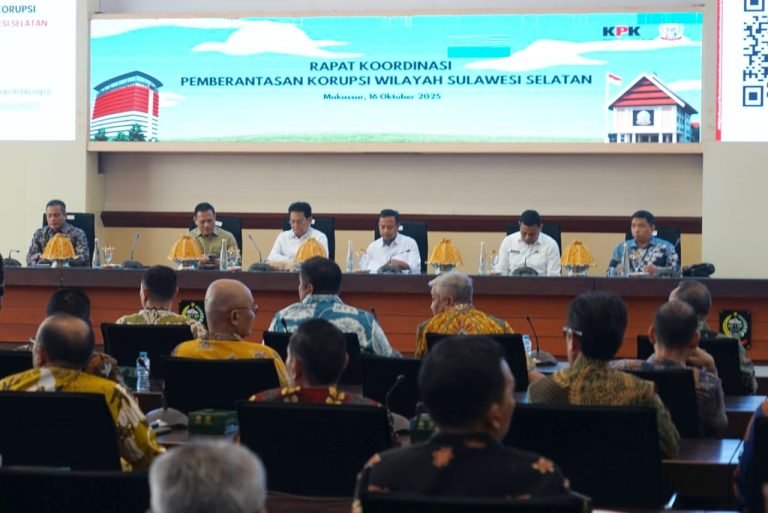 Makassar, Chaneltipikor.com – Bupati Luwu Timur, Irwan Bachri Syam hadiri menghadiri Rapat Koordinasi (Rakor) Pemberantasan Korupsi Wilayah Sulawesi Selatan 2025, yang digelar di ruang Rapat Pimpinan Kantor Gubernur Sulawesi Selatan, Kamis (16/10/2025).