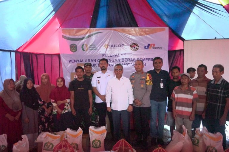 Luwu Timur, Chaneltipikor.com – Bupati Luwu Timur, H. Budiman bersama Wakil Bupati, Mohammad Akbar Andi Leluasa menyalurkan Cadangan Pangan Pemerintah (CPP) dalam rangka Pemberian Bantuan Pangan Beras Tahap I Tahun Anggaran 2024 yang berlangsung di Gudang Bulog Divre Desa Maleku, Kecamatan Mangkutana, Rabu (7/2/2024).