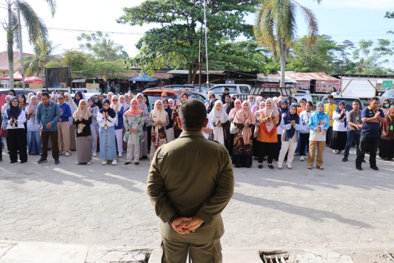 Usai berkeliling, Bupati Irwan memimpin apel di halaman rumah sakit. Dalam arahannya, ia menekankan pentingnya budaya kerja yang berorientasi pada pelayanan.