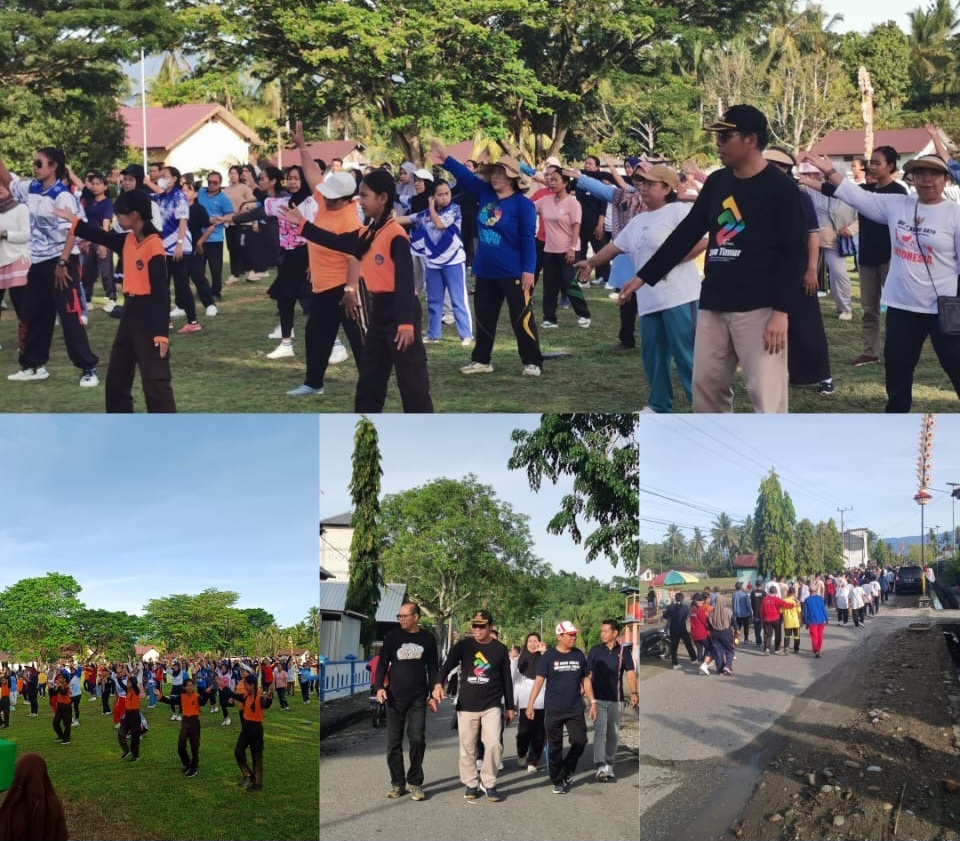 Luwu Timur, Chaneltipikor.com – Kegiatan Sabtu Sehat Juara (SSJ) yang biasanya digelar di Lapangan Batara Guru, Desa Kertoraharjo, untuk pertama kalinya dipusatkan di Lapangan Desa Cendana Hitam, Kecamatan Tomoni Timur, Sabtu (22/11/2025). Pemindahan lokasi ini justru menarik antusiasme warga setempat, termasuk para lansia yang tampak bersemangat mengikuti jalan sehat dan senam bersama.