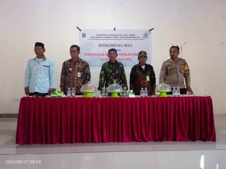 Luwu Timur, Chaneltipikor.com – Desa Margomulyo menjadi desa pertama di Kecamatan Tomoni Timur yang menggelar Musyawarah Perencanaan Pembangunan Desa (Musrenbang) RKPDes tahun 2025 pada Jumat (27/9/2024).