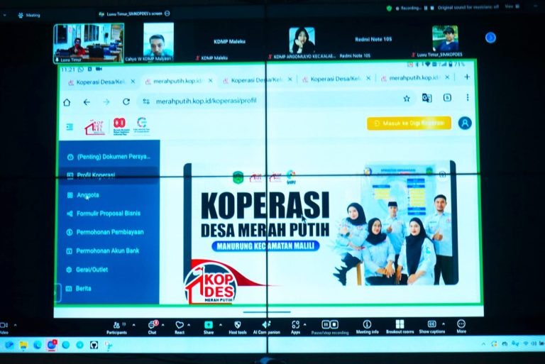 Luwu Timur, Chaneltipikor.com – Dinas Perdagangan, Koperasi, Usaha Kecil Menengah dan Perindustrian (Disdagkop) Kabupaten Luwu Timur menggelar pertemuan pembahasan teknis penggunaan akun Sistem Informasi Manajemen Koperasi Desa (SIMKOPDES) secara daring melalui aplikasi Zoom, Senin (29/09/2025).