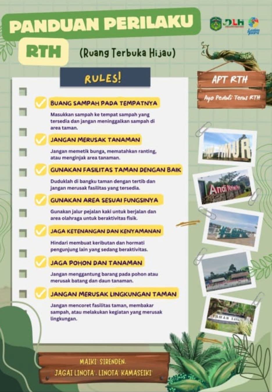 “RTH adalah milik kita bersama. Dengan mematuhi aturan ini, kita tidak hanya menjaga keindahan kota, tapi juga memberikan warisan lingkungan yang sehat untuk generasi mendatang,” tulis keterangan dalam kampanye tersebut.