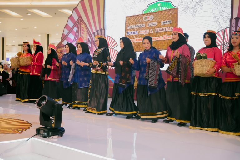 Makassar, Chaneltipikor.com – Rombongan parade Dekranasda Kabupaten Luwu Timur tampil memukau pada pembukaan Expo Kreatif Andalan 2025 di Trans Studio Mall Makassar, Sabtu malam (22/11/2025).