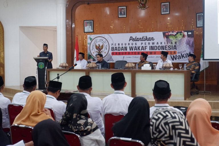 Luwu Timur, Chaneltipikor.com – Pengurus Badan Wakaf Indonesia (BWI) Perwakilan Kabupaten Luwu Timur resmi menjabat setelah dilantik oleh Ketua BWI Perwakilan Provinsi Sulawesi Selatan, Dr. H. Iskandar Fellang.