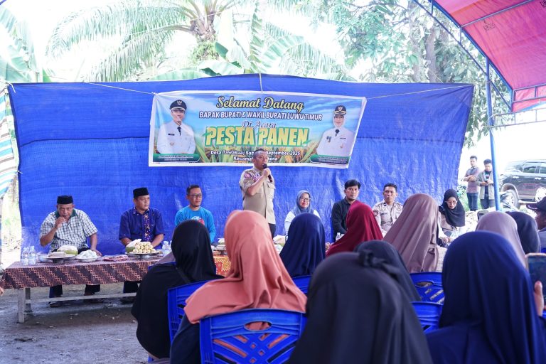 Luwu Timur, Chaneltipikor.com – Bupati Luwu Timur, Irwan Bachri Syam menghadiri acara Pesta Panen di Desa Tawakua, Kecamatan Angkona, Sabtu (08/11/2025).