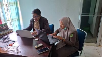 Mereka dicoaching langsung oleh Muhammad Akbar dan Dedi dari Bidang Aplikasi dan Informatika Diskominfo SP Lutim.