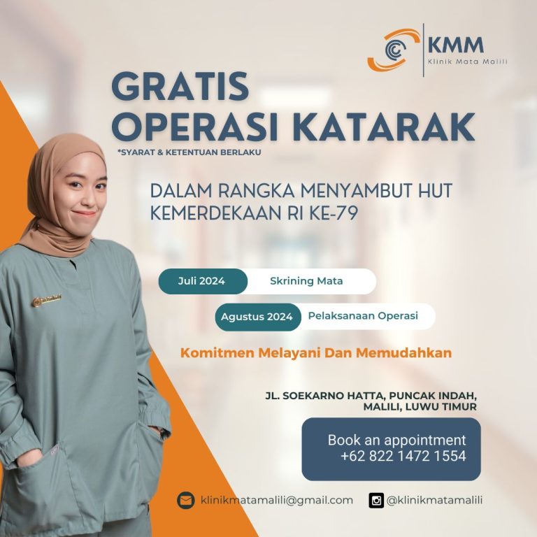 Luwu Timur, Chaneltipikor.com – Dalam rangka menyambut HUT Kemerdekaan Republik Indonesia yang ke-79, Klinik Mata Malili (KMM) akan memberikan pelayanan gratis untuk operasi katarak.