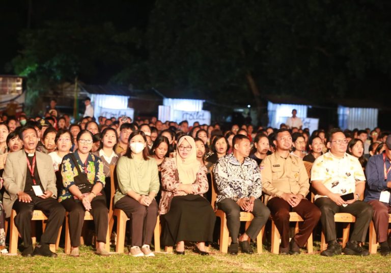 Kegiatan yang berlangsung di Lapangan Maleku, Kecamatan Mangkutana ini, turut dihadiri Wakil Bupati Luwu Timur, Hj. Puspawati Husler, Camat Mangkutana, Zulkifli Adi, Kadis Koperindag, Senfry Oktavianus dan Kadis Sosial P3A, Joni Patabi serta ribuan jemaat dan tokoh agama dari berbagai wilayah.