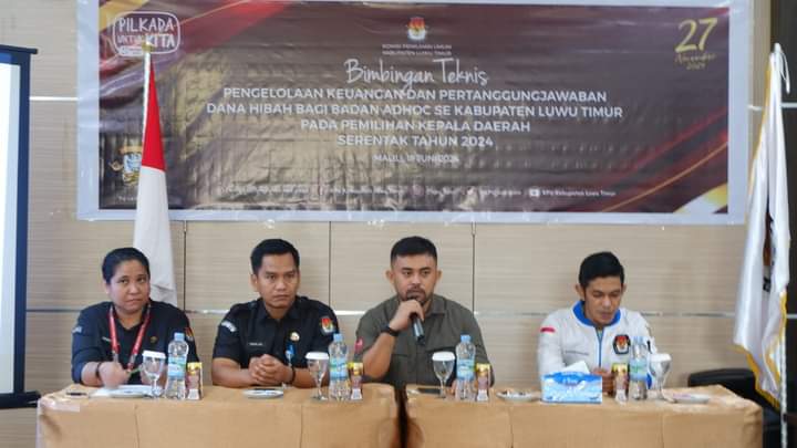 Luwu Timur, Chaneltipikor.com – Komisi Pemilihan Umum (KPU) Kabupaten Luwu Timur menggelar Bimbingan Teknis (Bimtek) Pengelolaan Keuangan dan Pertanggungjawaban Dana Hibah Badan Adhoc Kabupaten Luwu Timur Pada Pilkada Serentak Tahun 2024, di kantor KPU Kabupaten Luwu Timur, Kecamatan Malili, Rabu (19/6/2024).