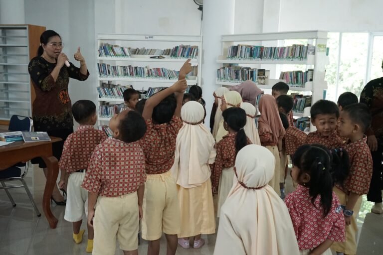 Sebanyak 32 siswa dari TK Pembina Malili beserta para guru pendamping diterima langsung oleh Pustakawan Madya, Jeniet berserta Pustakawan Ahli Muda, Nirmalasari.