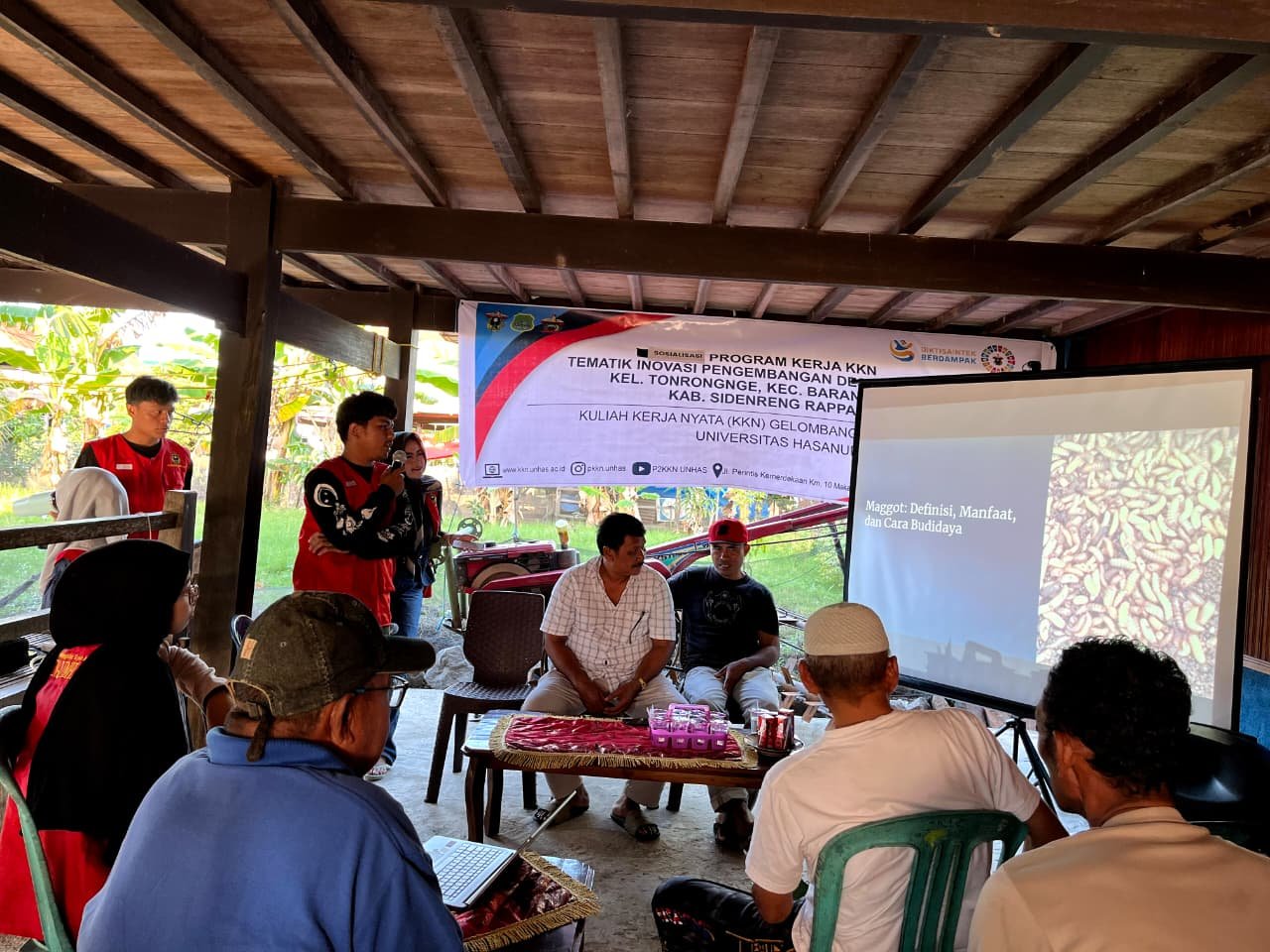 Sidrap, Chaneltipikor.com – Mahasiswa Kuliah Kerja Nyata (KKN) Tematik Gelombang 114 Universitas Hasanuddin melaksanakan kegiatan sosialisasi dan pelatihan budidaya maggot di Desa Tonrongnge, Kecamatan Baranti, Kabupaten Sidenreng Rappang. Kegiatan ini merupakan salah satu program kerja inovasi pengembangan desa yang bertujuan untuk memperkenalkan alternatif ramah lingkungan dalam pengelohan sampah yg ramah lingkungan dan berkelanjutan.