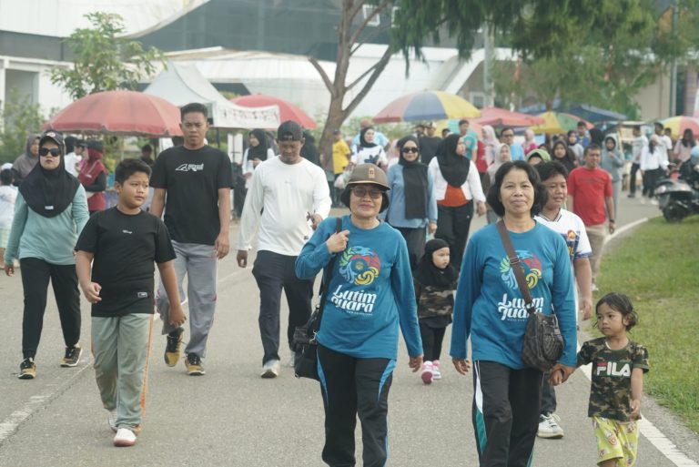 Antusiasme masyarakat terlihat begitu tinggi, ditandai dengan ratusan peserta yang ikut berjalan sehat mengelilingi Bundaran Batara Guru (BBG) Malili.