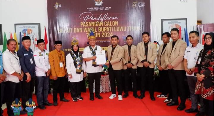 Luwu Timur, Chaneltipikor.com – Gabungan Partai Politik NasDem, HANURA, PBB, PSI dan Partai Gelora Indonesia mendaftarkan Irwan Bachri Syam, ST dan Dra. Hj. Puspawati sebagai Pasangan Calon Bupati dan Wakil Bupati Luwu Timur Tahun 2024, ke kantor KPU Kabupaten Luwu Timur, Kamis (29/8/2024) pukul 16.04 WITA.