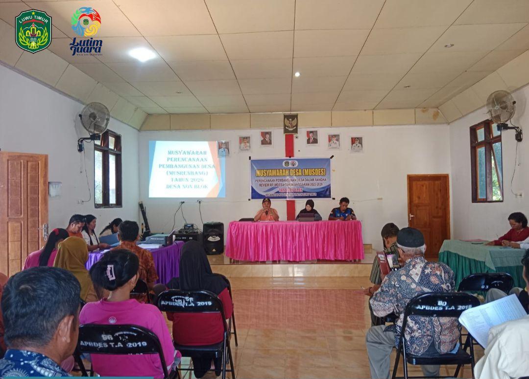 Luwu Timur, Chaneltipikor.com – Pemerintah Desa Non Blok menyelenggarakan Musyawarah Desa (Musdes) Penetapan Perubahan RPJMDes Tahun 2022–2029 bertempat di Aula Kantor Desa Non Blok, Kecamatan Kalaena. Jumat (27/2/2026).