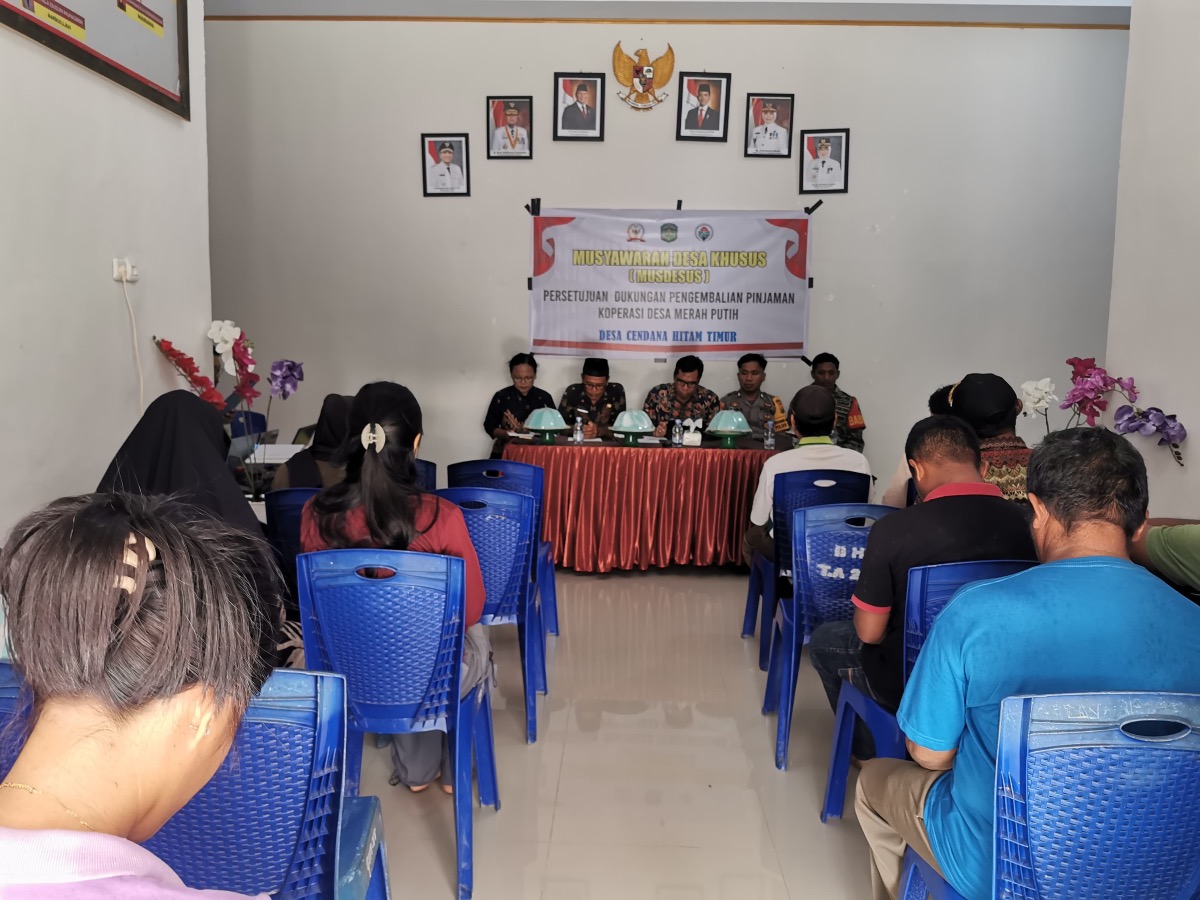 Luwu Timur, Chaneltipikor.com – Pemerintah Desa Cendana Hitam Timur, Kecamatan Tomoni Timur menggelar Musyawarah Desa Khusus (Musdesus) terkait persetujuan dukungan pengembalian pinjaman bagi Koperasi Desa Merah Putih (KDMP) di aula kantor desa, Kamis (20/11/2025).