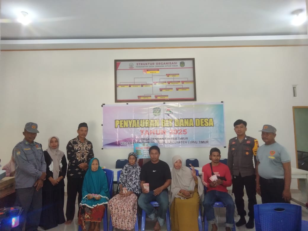 Luwu Timur, Chaneltipikor.com – Pemerintah Desa Cendana Hitam Timur menyalurkan Bantuan Langsung Tunai (BLT) bersumber dari Dana Desa (DD) Tahap II Tahun Anggaran 2025 di Aula kantor Desa Cendana Hitam Timur, Kecamatan Tomoni Timur, Sabtu (24/5/2025).