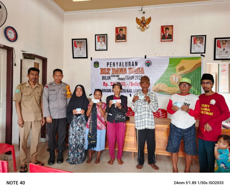 Luwu Timur, Chaneltipikor.com – Pemerintah Desa Rinjani menyalurkan Bantuan Langsung Tunai (BLT) Dana Desa (DD) Tahap I Tahun Anggaran 2025 kepada 33 Keluarga Penerima Manfaat (KPM) di Aula Kantor Desa Rinjani, Kecamatan Wotu. Selasa (25/3/2025).