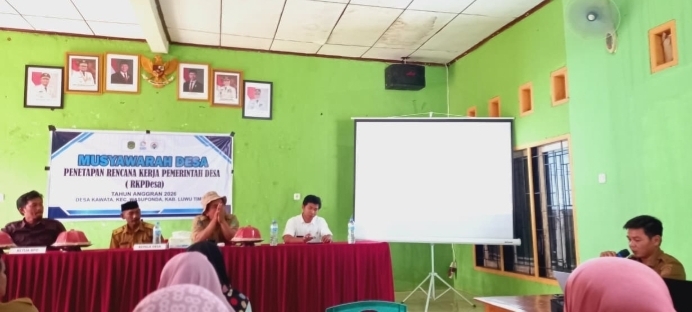 Luwu Timur, Chaneltipikor.com – Pemerintah Desa Kawata menggelar Musyawarah Desa (Musdes) dalam Rangka Penetapan Rencana Kerja Pemerintah Desa (RKPDes) Tahun anggaran 2026 di aula kantor Desa Kawata, Kecamatan Wasuponda. Senin (27/10/2025).