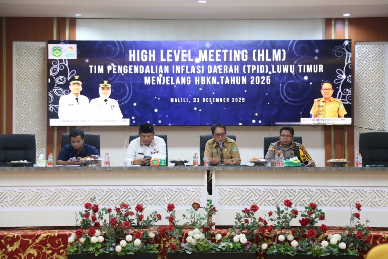 Luwu Timur, Chaneltipikor.com – Dalam rangka menjaga stabilitas ekonomi dan mengendalikan inflasi daerah menjelang Hari Besar Keagamaan Nasional (HBKN) Natal dan Tahun Baru (Nataru), Pemerintah Kabupaten Luwu Timur menggelar High Level Meeting (HLM) Tim Pengendalian Inflasi Daerah (TPID), Selasa (23/12/2025).