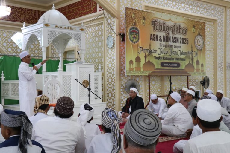 Luwu Timur, Chaneltipikor.com – Semangat kebangkitan rohani menggema di Masjid Babul Khaer, Desa Puncak Indah, Kecamatan Malili, saat ratusan Aparatur Sipil Negara (ASN) dan Non ASN Luwu Timur berkumpul dalam Tabligh Akbar 2025 yang dirangkaikan dengan peringatan Tahun Baru Islam 1447 Hijriah tingkat Kabupaten.