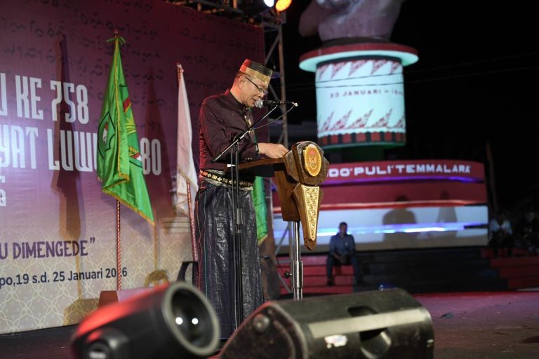 Kegiatan tersebut dirangkaikan dengan Anugerah Budaya Luwu 2026 yang digelar di halaman Istana Kedatuan Luwu, Kota Palopo, Jumat malam (23/01/2026).