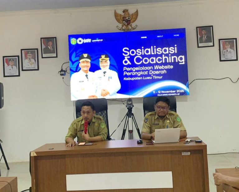 Luwu Timur, Chaneltipikor.com – Pemerintah Kabupaten Luwu Timur melalui Dinas Komunikasi, Informatika, Statistik, dan Persandian (Diskominfo-SP) bidang Aplikasi dan Informatika (Aptika) mengadakan Coaching Pengelolaan Website Perangkat Daerah. Kegiatan ini diikuti oleh seluruh Organisasi Perangkat Daerah (OPD), Kecamatan, dan Kelurahan.