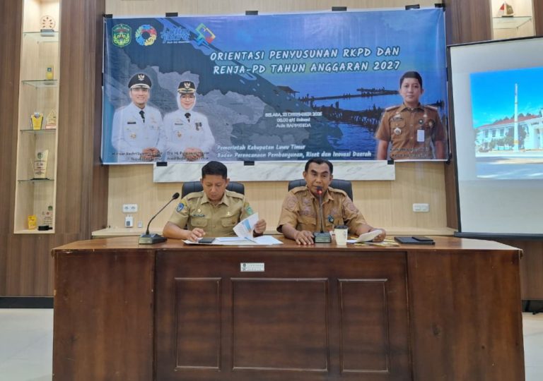 Luwu Timur, Chaneltipikor.com – Pemerintah Kabupaten Luwu Timur menggelar Rapat Orientasi Penyusunan Rencana Kerja Pemerintah Daerah (RKPD) dan Rencana Kerja (Renja) Perangkat Daerah Tahun Anggaran 2027.