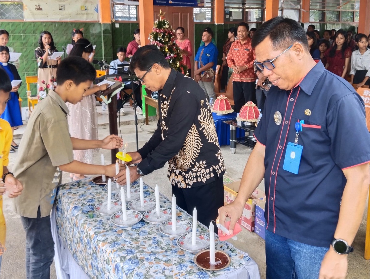 Perayaan yang diikuti sekitar 160 siswa beragama Kristen, para guru lintas agama, serta unsur pemerintah kecamatan itu mengangkat tema nasional : “Allah Hadir untuk Menyelamatkan Keluarga.”