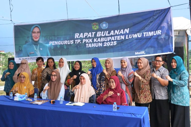 Luwu Timur, Chaneltipikor.com – Untuk menjaga kekompakan serta memperkuat sinergi internal organisasi, Ketua Tim Penggerak PKK Kabupaten Luwu Timur, dr. Ani Nurbani Irwan, memimpin langsung rapat bulanan TP PKK yang digelar di Jalan Dr. Sam Ratulangi, Rabu (23/7/2025).