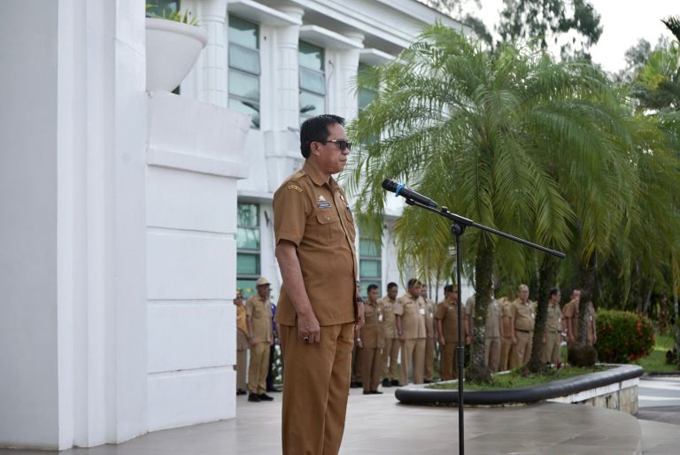 Luwu Timur, Chaneltipikor.com – Penjabat (Pj) Sekretaris Daerah Luwu Timur, Dr. Ramadhan Pirade, bertindak selaku Pembina Apel pada pelaksanaan apel pagi yang digelar di Halaman Kantor Bupati, Senin (12/01/2026).