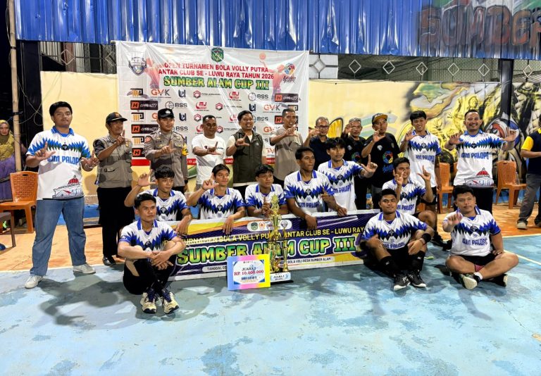 Luwu Timur, Chaneltipikor.com – Open Turnamen Volly Putra Sumber Alam Cup III se-Luwu Raya yang berlangsung di Lapangan Voly Desa Sumber Alam, Kecamatan Tomoni, Kabupaten Luwu Timur, sejak 3 Januari 2026 resmi mencapai puncaknya, Jumat (16/1/2026).