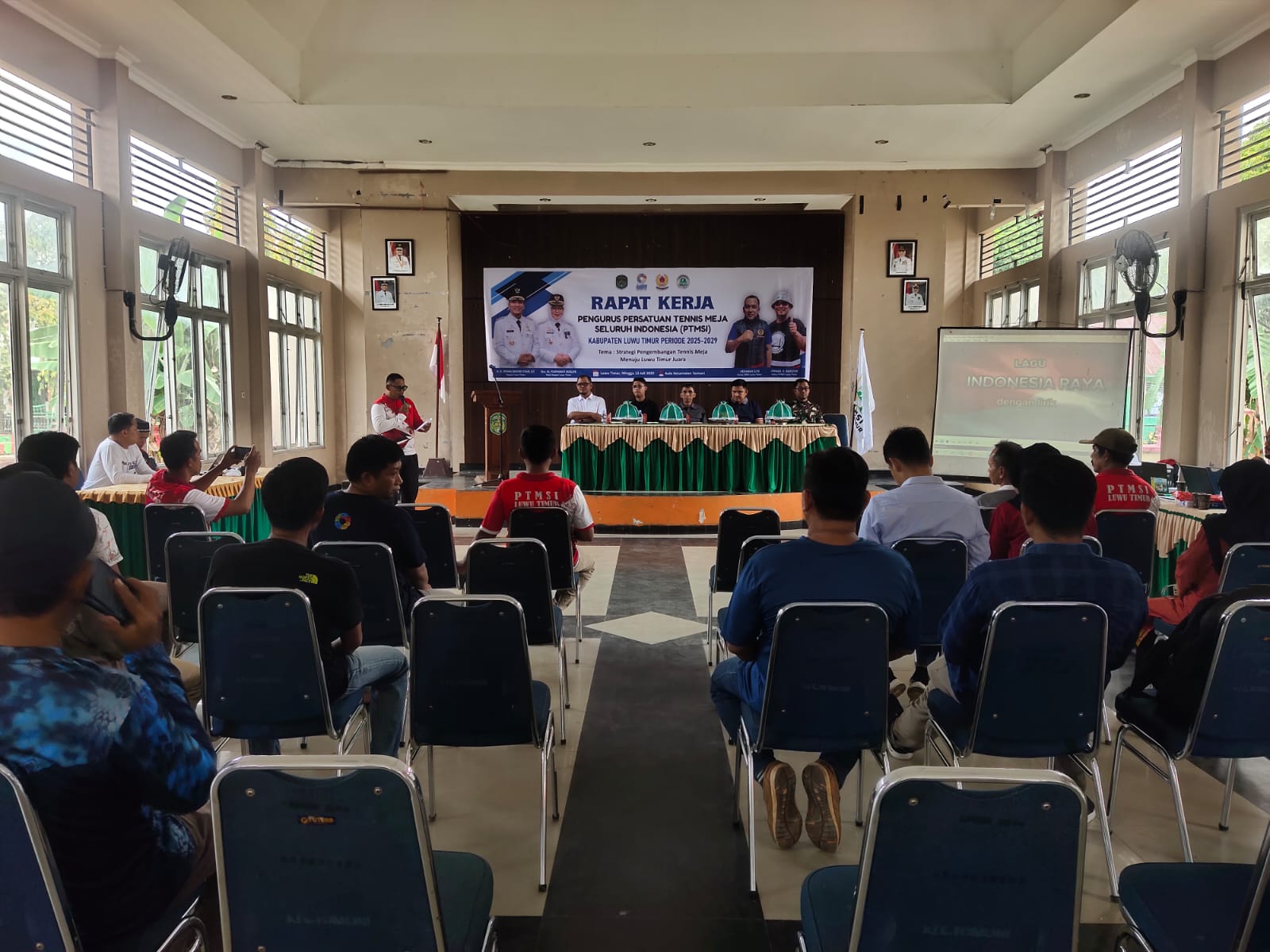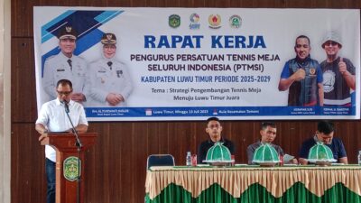 Luwu Timur, Chaneltipikor.com – Bertemakan “Strategi Pengembangan Tennis Meja Menuju Luwu Timur Juara”, Para Pengurus Cabang Olahraga Persatuan Tennis Meja Seluruh Indonesia (PTMSI) Luwu Timur, Sulawesi Selatan menggelar rapat kerja periode 2025-2029 di Aula Kantor Kecamatan Tomoni, Minggu (13/7/2025).