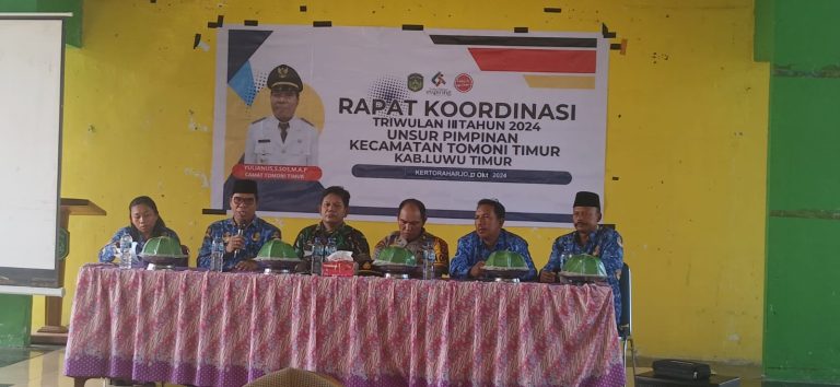 Luwu Timur, Chaneltipikor.com – Pemerintah Kecamatan Tomoni Timur menggelar Rapat Koordinasi Triwulan III pada Kamis (17/10/2024) di Gedung Serbaguna Kecamatan Tomoni Timur.