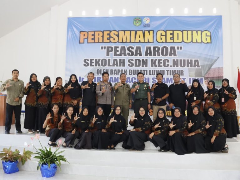 Luwu Timur, Chaneltipikor.com – Bupati Luwu Timur, Irwan Bachri Syam meresmikan Gedung Peasa Aroa, merupakan fasilitas bersama yang akan digunakan oleh tiga sekolah, yakni UPT SDN 247 Sorowako, UPT SDN 252 Nikkel, dan UPT 256 Dongi, di Kecamatan Nuha, Kamis (04/12/2025).