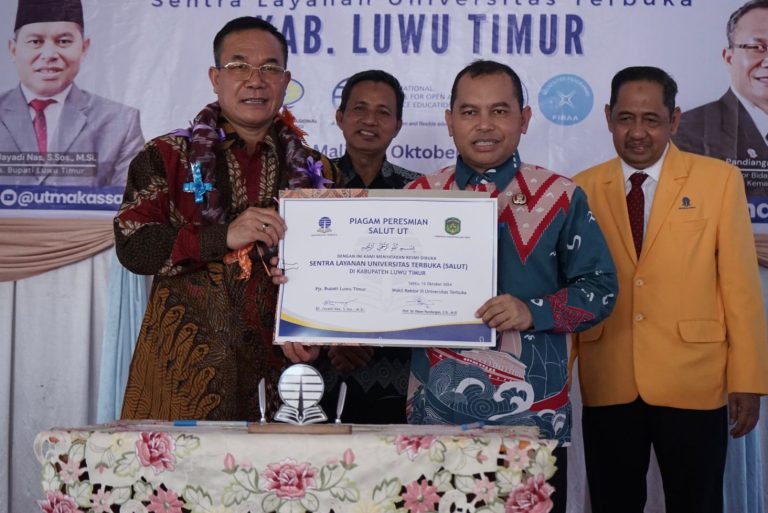 Luwu Timur, Chaneltipikor.com – Pjs. Bupati Luwu Timur, Jayadi Nas meresmikan Sentra Layanan Universitas Terbuka (SALUT) Kabupaten Luwu Timur, ditandai dengan pengguntingan pita dan penandatanganan perjanjian kerja sama serta penandatanganan piagam peresmian, Sabtu (12/10/2024), di Kantor SALUT Lutim, Puncak Indah, Malili.