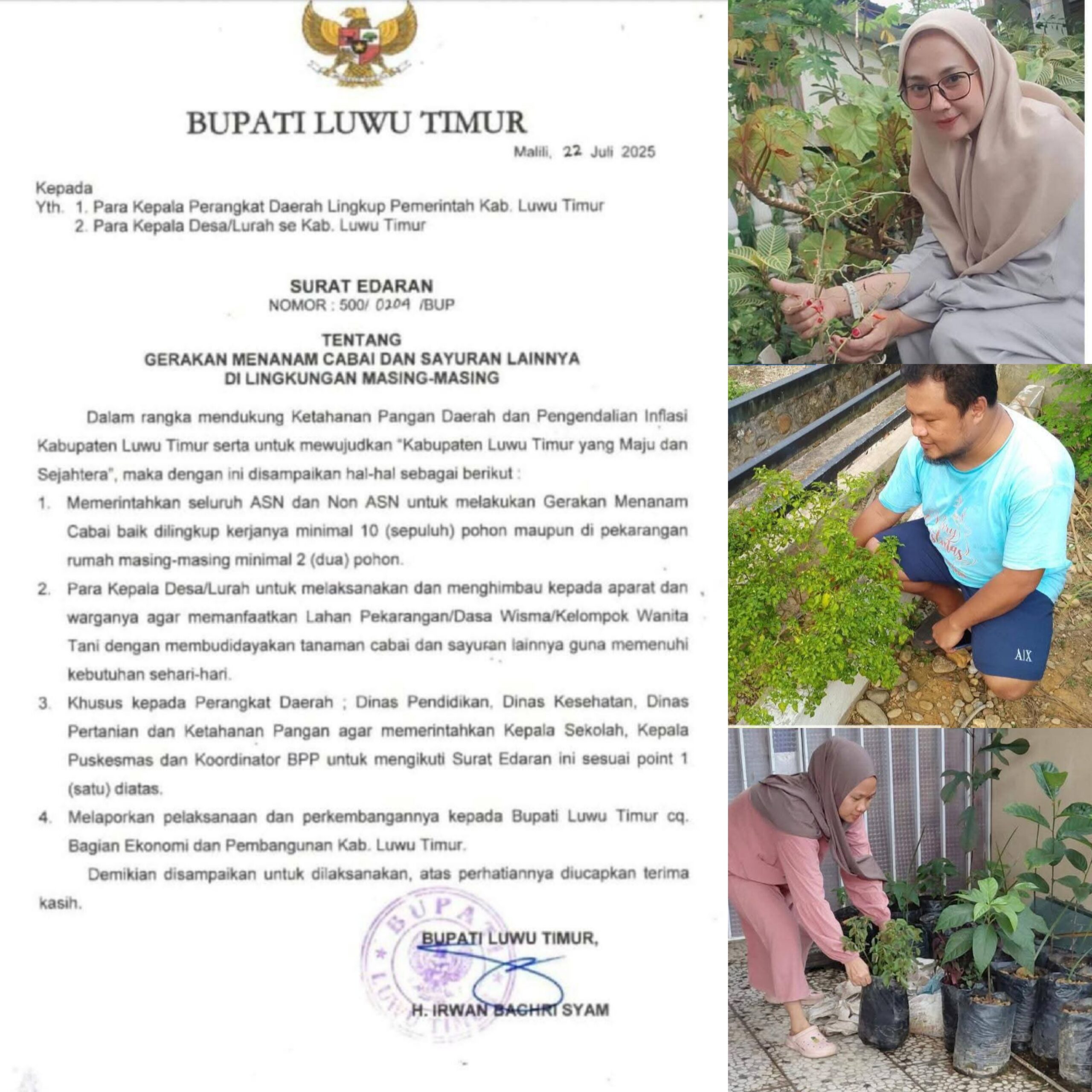 Kegiatan ini mengacu pada Surat Edaran Bupati Luwu Timur Nomor 500/0204/BUP tanggal 22 Juli 2025 tentang Gerakan Menanam Cabai dan Sayuran Lainnya di Lingkungan Masing-masing. Gerakan ini merupakan salah satu upaya PemKab dalam menekan inflasi khususnya di Kabupaten Luwu Timur.