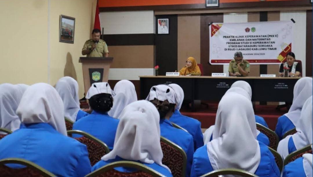 Luwu Timur, Chaneltipikor.com – Direktur RSUD I Lagaligo, dr. Irfan, Sp. PK menerima mahasiswa peserta Program Praktek Belajar Klinik (PBK) STIKES Batara Guru yang di wakili oleh Kepala UPM STIKES Batara Guru, Ns. Ermawati Uki, S.Kep, M.Kep, Sp. A (Senin 04 Agustus 2025).