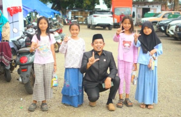 Selain menyapa orang dewasa, Rusdi juga menyempatkan diri bercengkerama dengan anak-anak.
