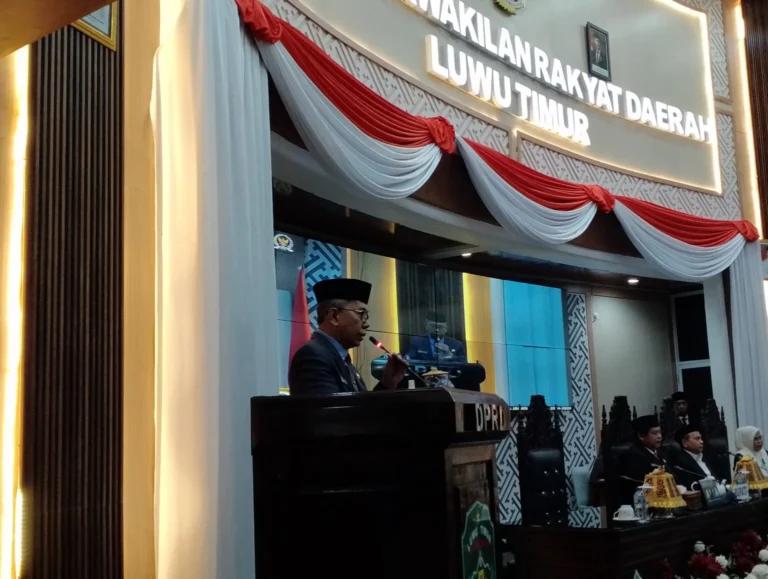 Luwu Timur, Chaneltipikor.com – Sekda Bahri Suli membacakan sambutan Bupati Luwu Timur H. Budiman saat rapat paripurna pengucapan sumpah dan janji sebagai anggota DPRD Yusuf Pumbatu Pengganti Antar Waktu (PAW) sisa masa jabatan 2024-2029 yang dipimpin langsung ketua DPRD Ober Datte.