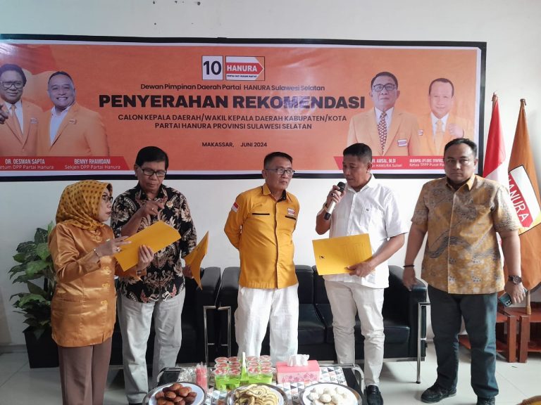 Luwu Timur, Chaneltipikor.com – H. Isrullah Achmad, Bakal Calon Kepala Daerah (Bacakada) Luwu Timur 2024 menerima rekomendasi dari Partai Hanura di Kantor DPD Partai Hanura Sulawesi Selatan.