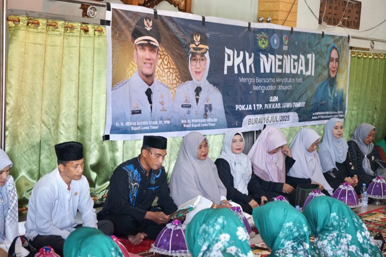 Luwu Timur, Chaneltipikor.com – Sebagai upaya dalam meningkatkan keimanan dan ketakwaan sekaligus mempererat silaturahmi antar pengurus, Tim Penggerak PKK Kabupaten Luwu Timur melalui Kelompok Kerja (Pokja) I menggelar kegiatan bertajuk “PKK Mengaji” yang dipusatkan di Masjid Nurul Yaqin, Desa Benteng, Kecamatan Burau, Rabu (16/7/2025).
