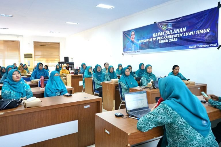 Luwu Timur, Chaneltipikor.com – Tim Penggerak PKK Kabupaten Luwu Timur (Lutim) menggelar Rapat Bulanan bersama TP PKK Kecamatan se-Kabupaten Luwu Timur di Aula Media Centre Diskominfo SP, Selasa (30/09/2025).